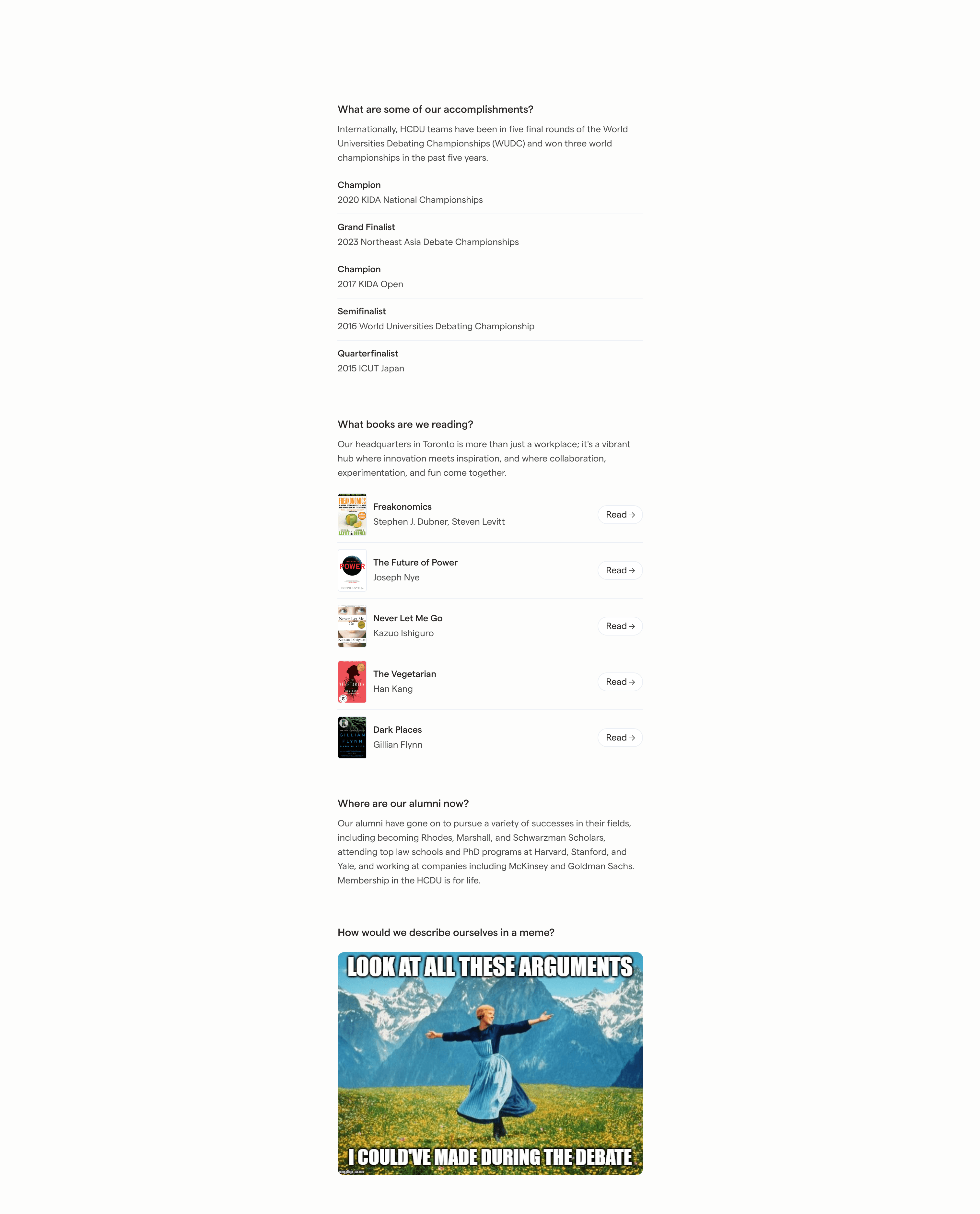 From these experiences and experiments, we can be more informed when expanding to other fields like programming (hackathons), MUN, gaming, book clubs, science fair, consulting, student newspapers, chess clubs, etc.